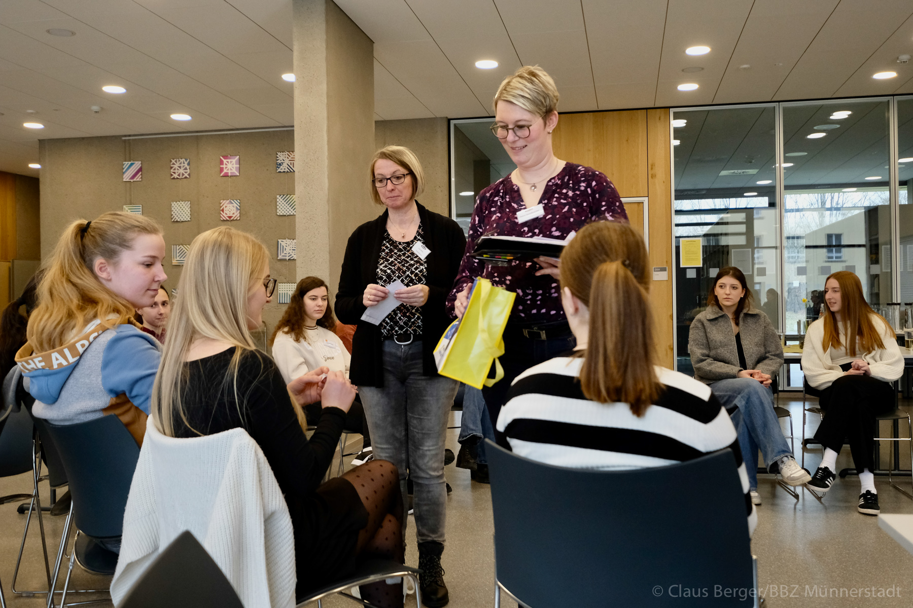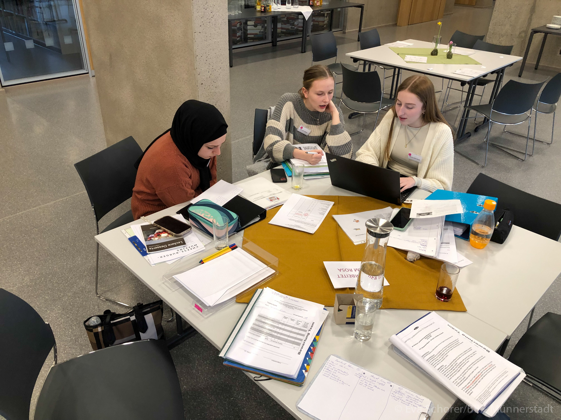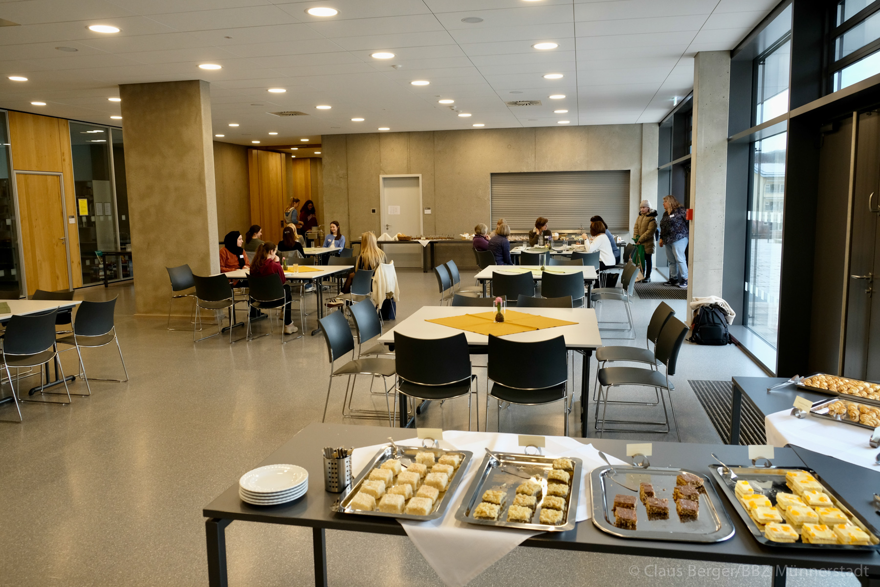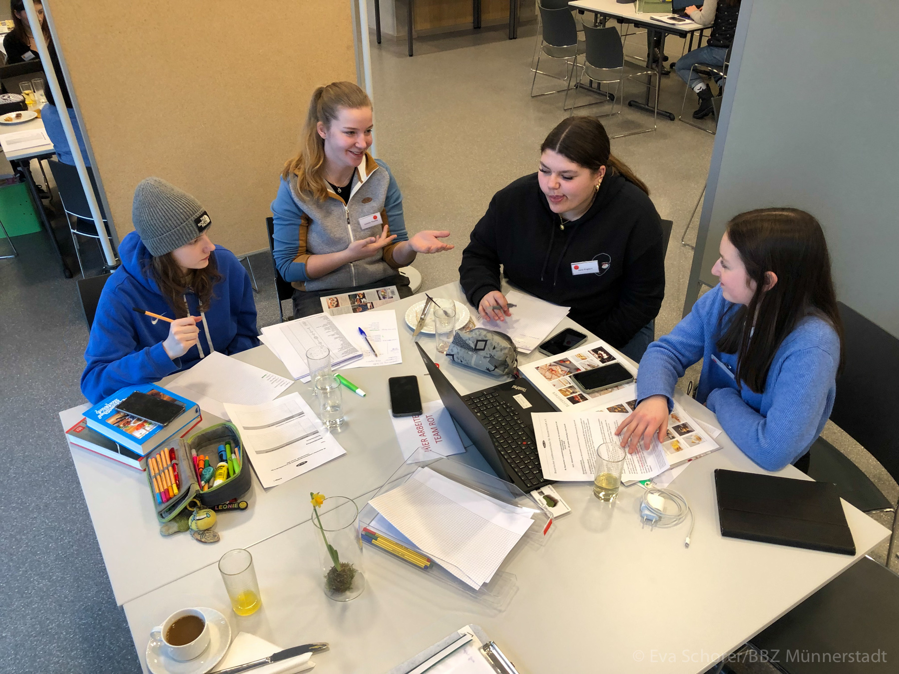 Am Samstagvormittag führten die Teams die geplanten Aufgaben dann in den modernen Räumen des BBZ aus. Für alle Beteiligten (Teilnehmer/innen, Jurorinnen, Verantwortliche) bereiteten Schüler/innen der Münnerstädter BFS für Ernährung und Versorgung ein leckeres Mittagessen, so dass man gestärkt die Tische mit dem Wettbewerbsergebnissen aufbauen und dem Ankommen der Gäste entgegensehen konnte.