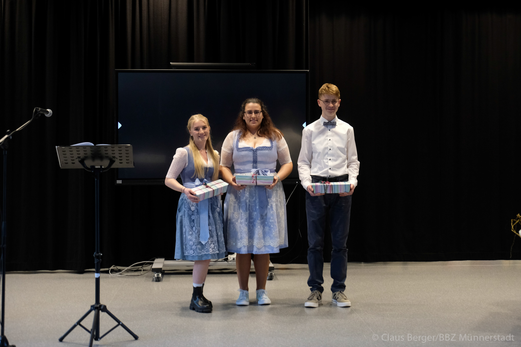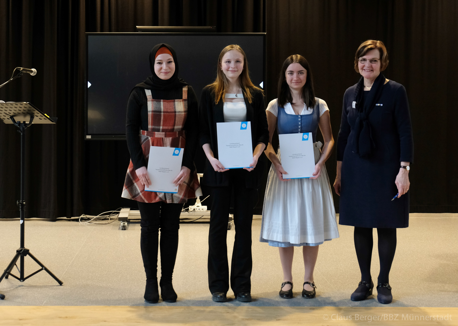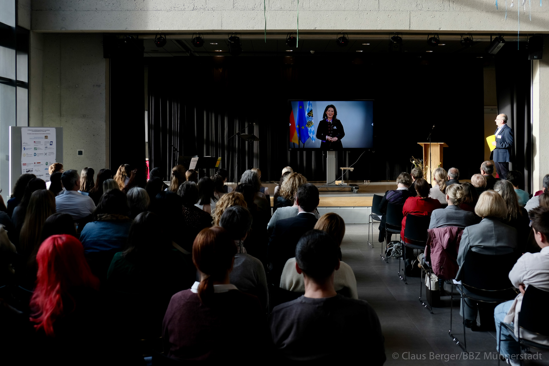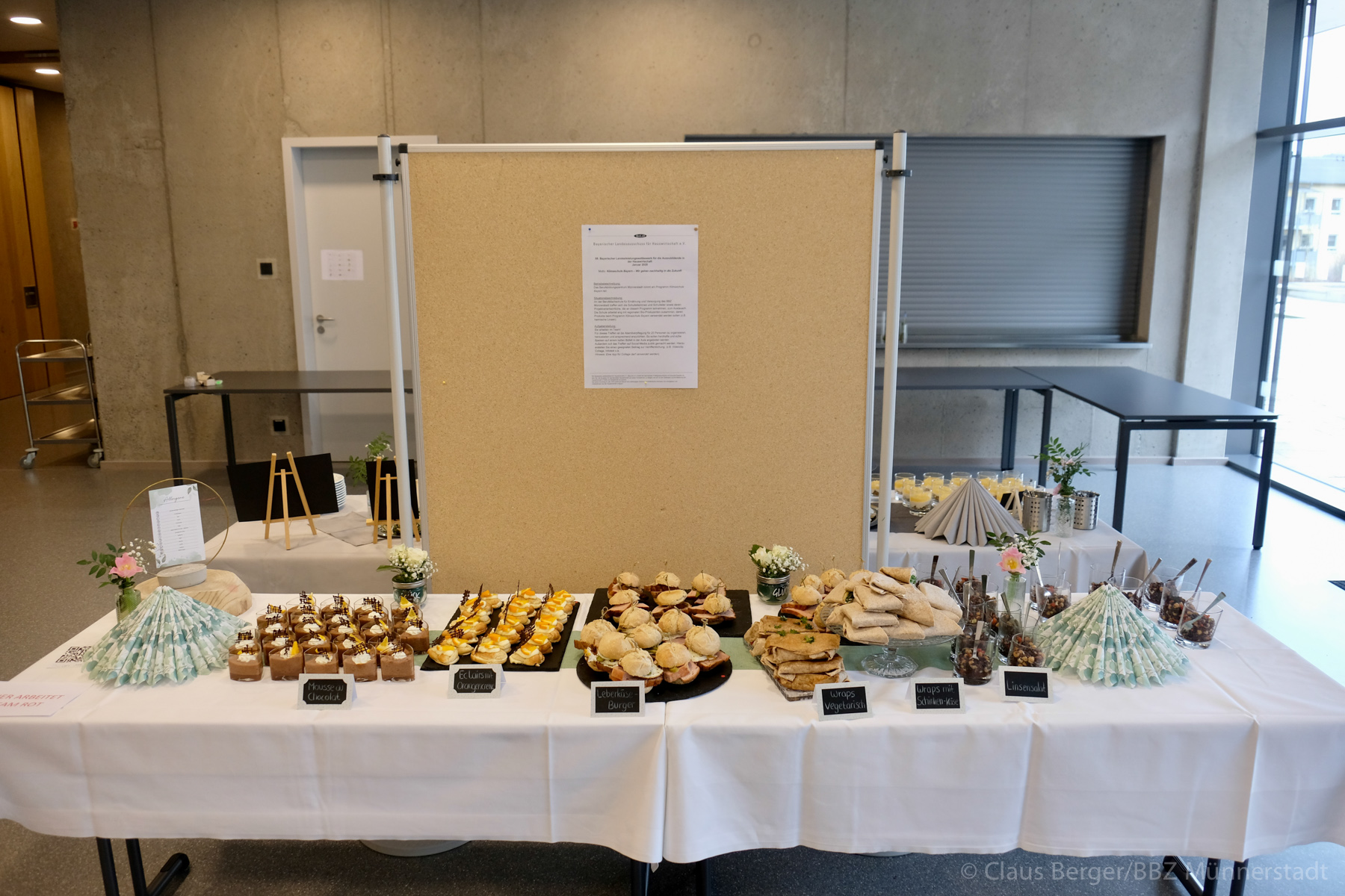 Vor der Siegerehrung konnten alle Wettbewerbsergebnisse in der Cafeteria ausgiebig besichtigt bzw. verzehrt werden. In der nach dem Schulgründer benannten Otto-Nickl-Aula begrüßte dann Schulleiter Georg Gißler alle Anwesenden, es gab Grußworte von Schirmherrin Staatsministerin Michaela Kaniber (per Videoeinspielung) sowie Staatssekretärin Sabine Dittmar und stellv. Landrat Emil Müller. Die Übergabe der Preise übernahm Margarethe Engel, Vorstandsmitglied der BayLaH, die Moderation der Veranstaltung Ulrike Kluge. Besonders gut kamen bei den Anwesenden die von den BBZ-Lehrkräften Ilka Friedel und Ulrike Reinhardt-Koch dargebotenen Musikstücke an.