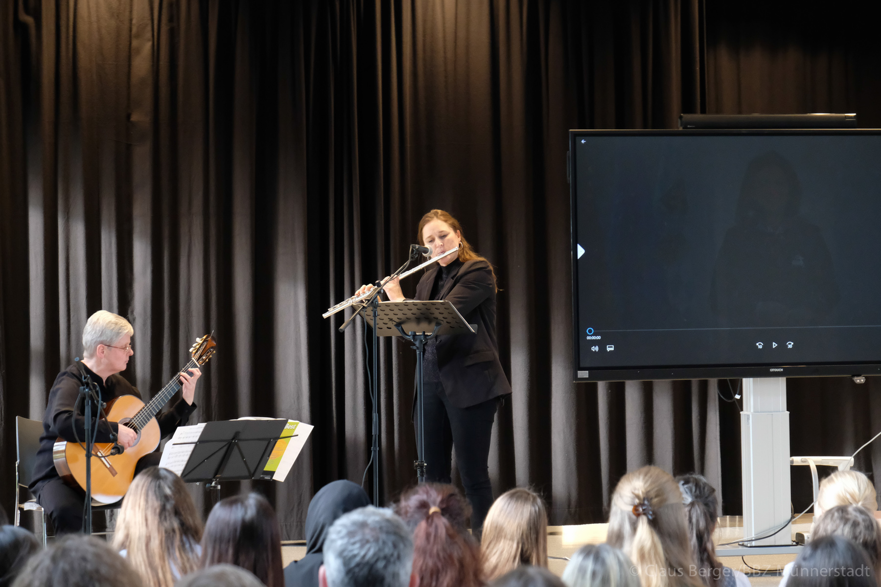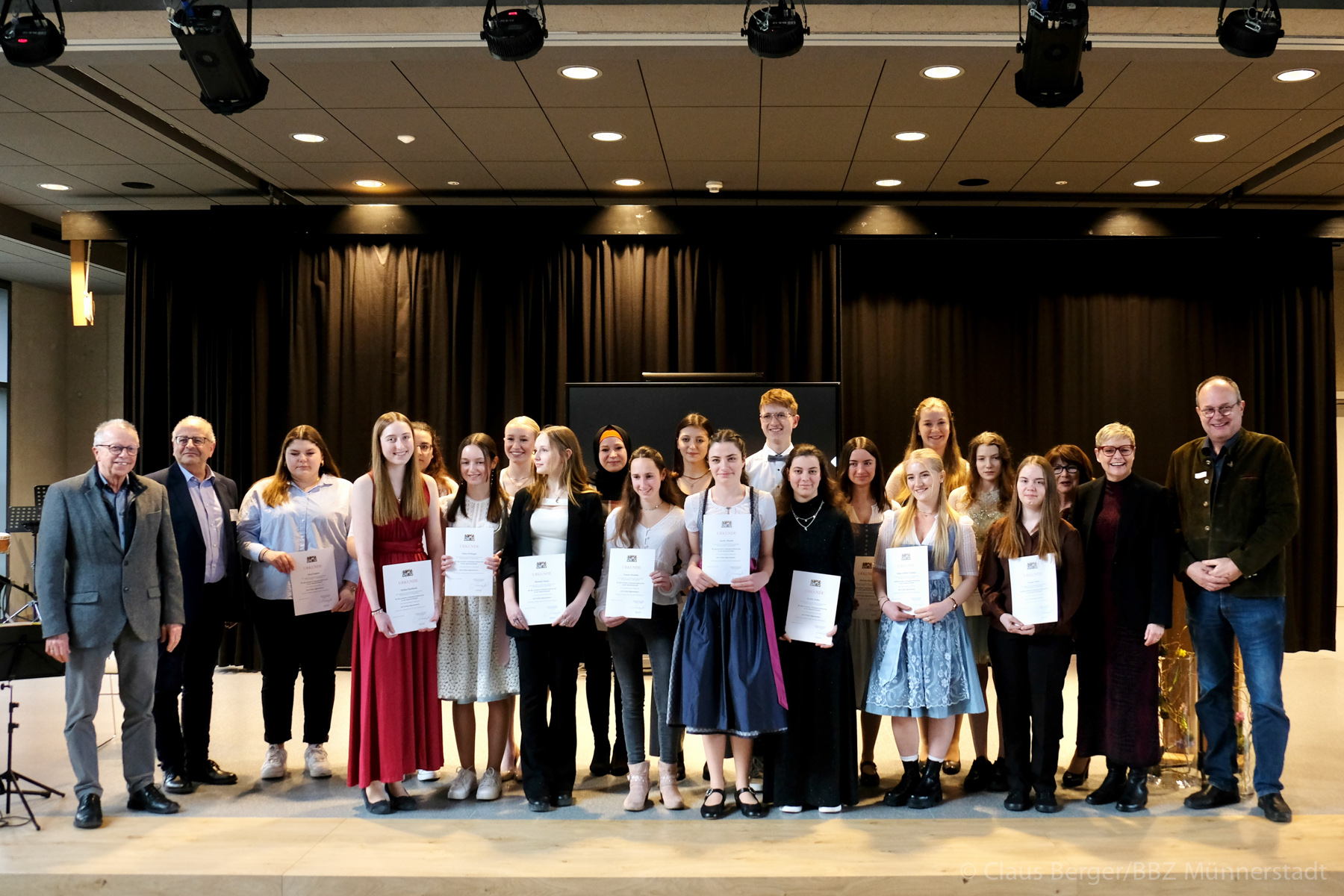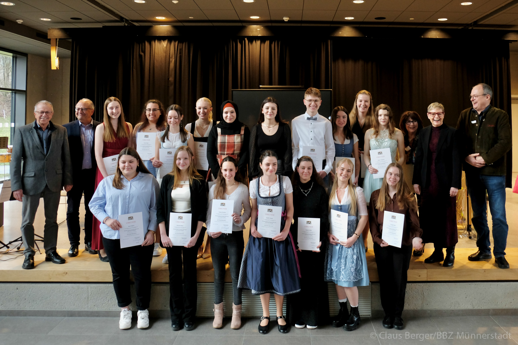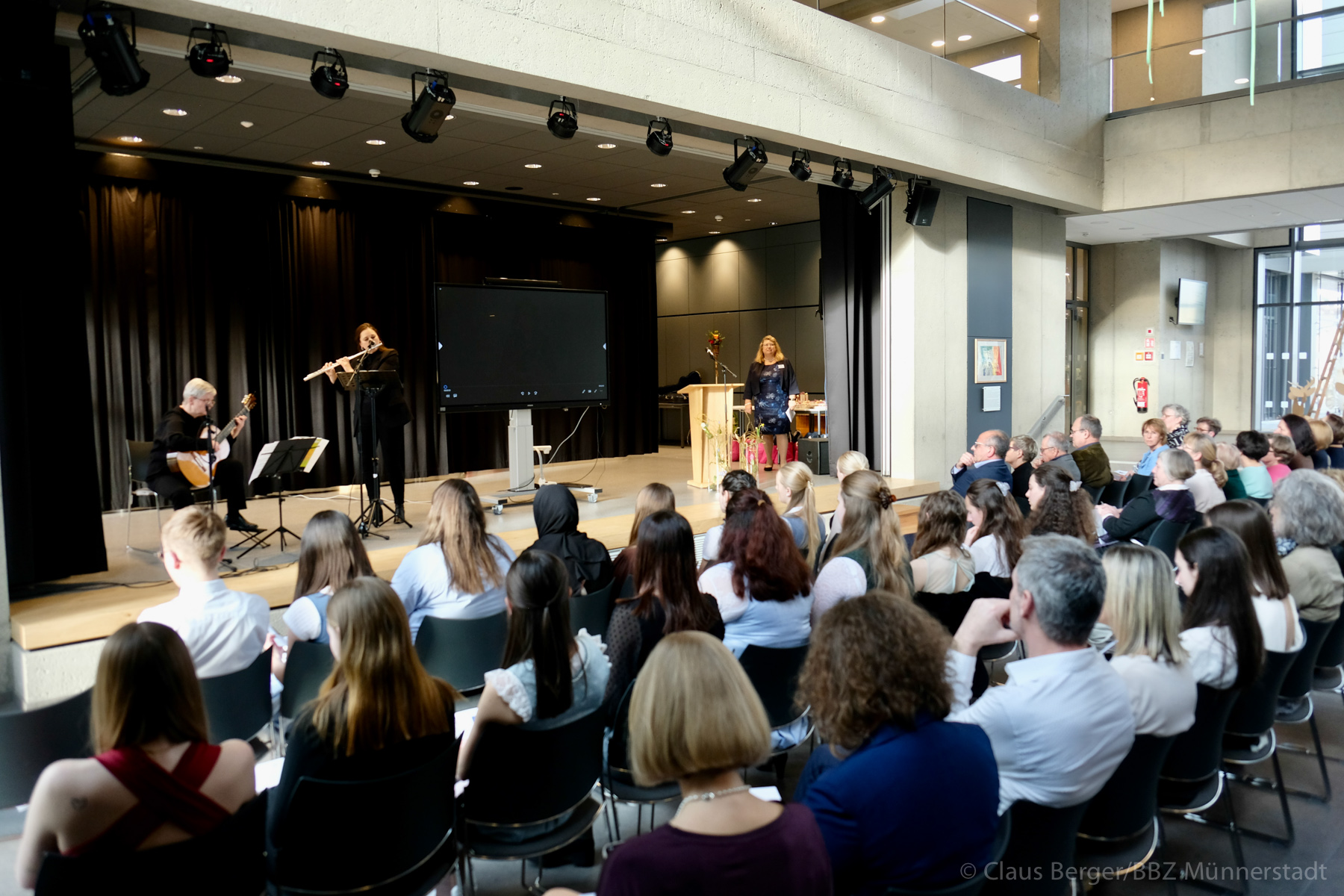 Vor der Siegerehrung konnten alle Wettbewerbsergebnisse in der Cafeteria ausgiebig besichtigt bzw. verzehrt werden. In der nach dem Schulgründer benannten Otto-Nickl-Aula begrüßte dann Schulleiter Georg Gißler alle Anwesenden, es gab Grußworte von Schirmherrin Staatsministerin Michaela Kaniber (per Videoeinspielung) sowie Staatssekretärin Sabine Dittmar und stellv. Landrat Emil Müller. Die Übergabe der Preise übernahm Margarethe Engel, Vorstandsmitglied der BayLaH, die Moderation der Veranstaltung Ulrike Kluge. Besonders gut kamen bei den Anwesenden die von den BBZ-Lehrkräften Ilka Friedel und Ulrike Reinhardt-Koch dargebotenen Musikstücke an.