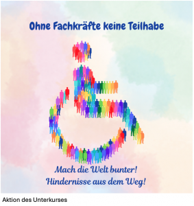 Ohne Fachkräfte ist Teilhabe für Menschen mit Behinderung nicht möglich – darauf macht die bundesweite Aktionswoche (20.–24. April 2026) aufmerksam. Auch Schülerinnen und Schüler der Fachschule für Heilerziehungspflege des BBZ Münnerstadt beteiligen sich mit eigenen Aktionen.