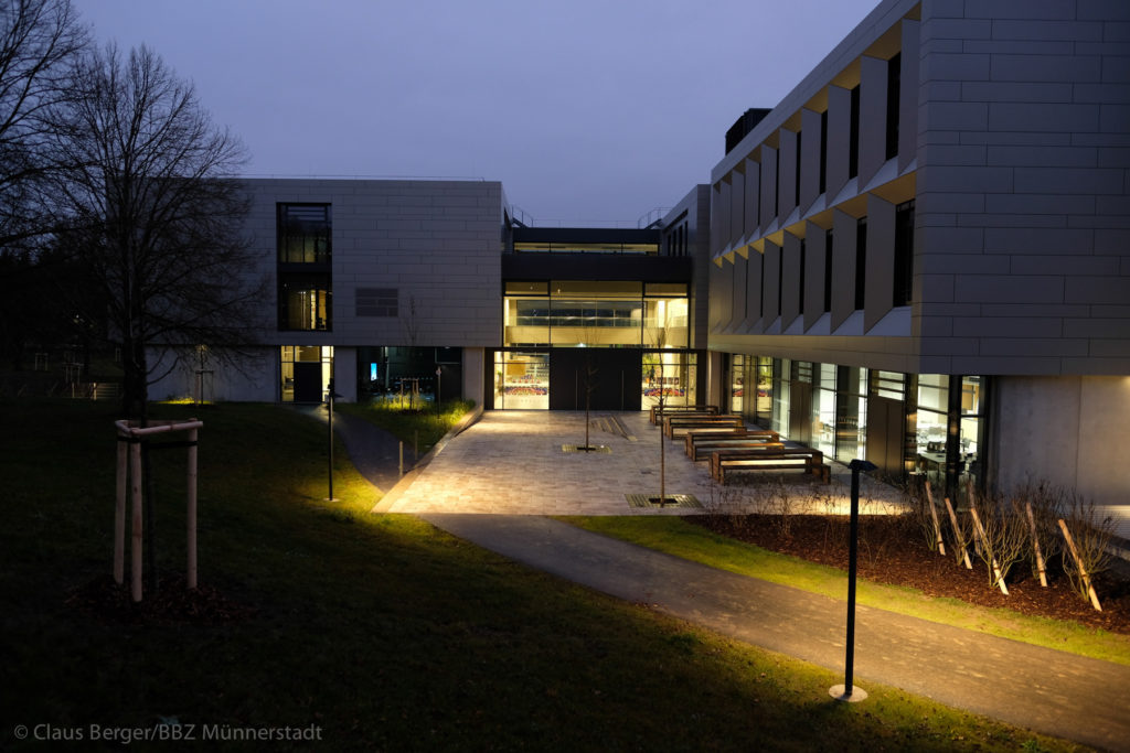 Am Haupteingang befindet sich ein großer Pausenbereich. Zusätzlich gibt es einen Lesehof (Ruhebereich) hinter der Eingangshalle.